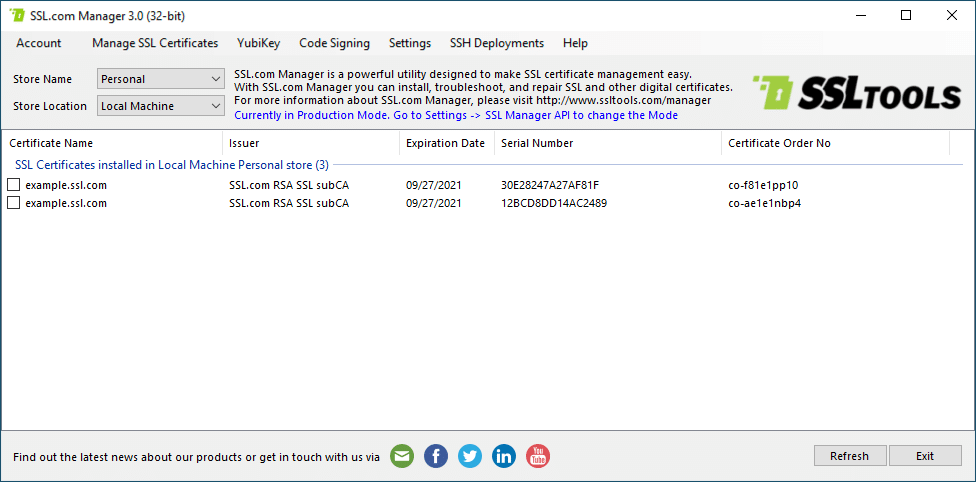 SSL Manager is SSL.com’s exclusive Windows desktop application for ordering and managing digital certificates