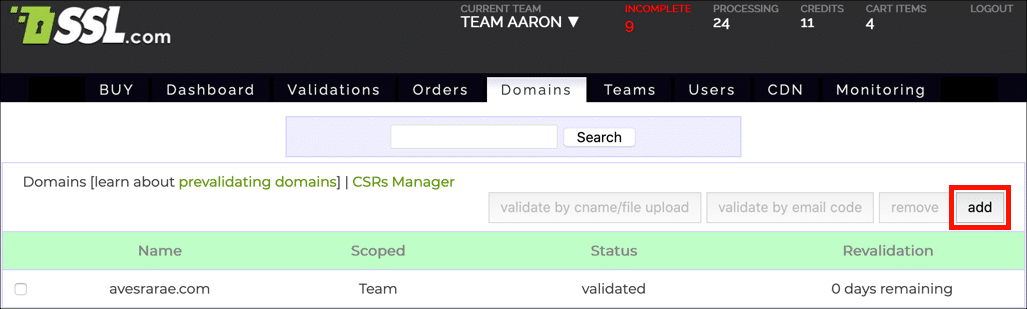 Validation of a domain name expires after 397 days, after which it must be revalidated. Here’s how to renew an expired domain validation, so you and your team members can continue ordering certificates from SSL.com.