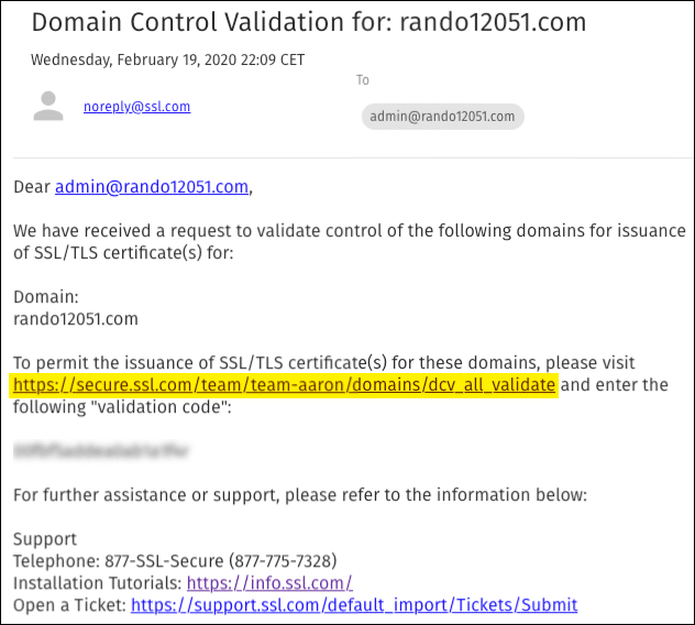 Using your SSL.com account portal, it is possible to pre-validate a domain name before ordering certificates. Domain validation is scoped to teams, so any team member can order certificates for a pre-validated domain.