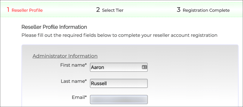 - Fill out the Reseller Profile Information form, then click the Next>> button.